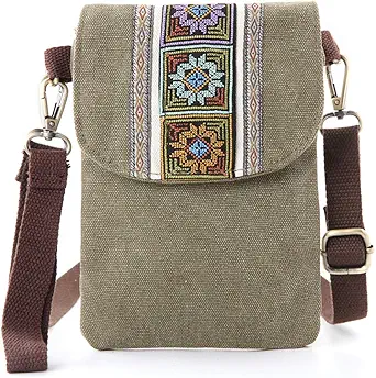 SILKAREA Vintage Embroidered Canvas Flip Small Crossbody Bag Cell Phone Pouch for Women Wristlet Wallet Bag Coin Purse