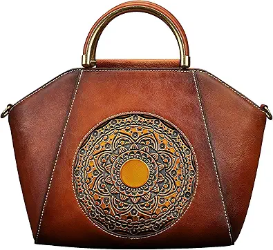 Women Genuine Leather Handbags, Organizer Retro Vegetable Tanning leather Satchel Vintage Embossing Totem Shoulder Bag
