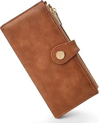 Womens Leather Wallet RFID Blocking Slim Bifold Credit Card Holder Travel Wallet with Double Zipper Pocket