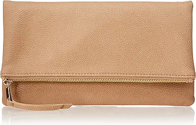 Faux soft pebbled leather, fold over with slide pocket under flap, zip closure and inside zipper pocket